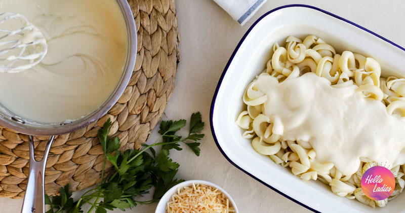 - ඊට පස්සේ Heavy Cream, Boiled Pasta සහ පාමසාන් චීස් ඒකට දාන්න.